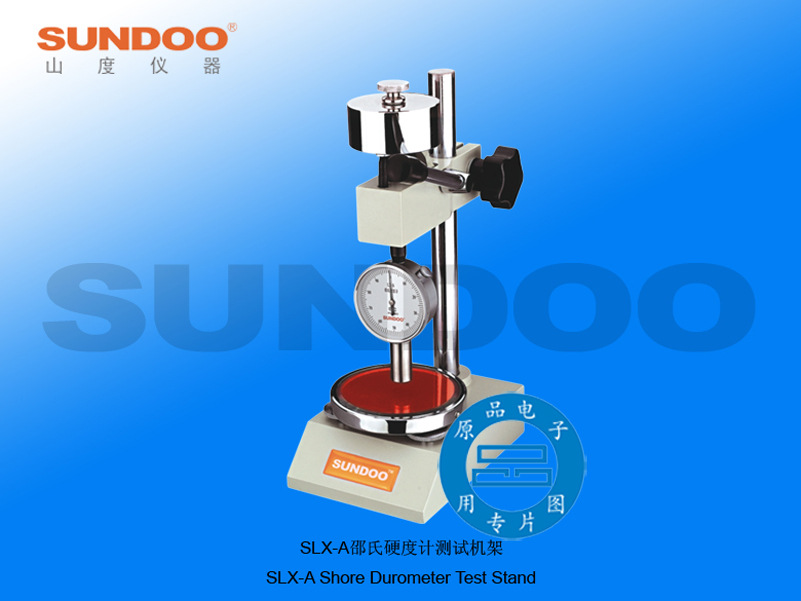 SLX-A型邵氏硬度计测试机架专用于配置A型邵氏硬度计或D型或C微孔材料硬度计。机架上端配置专用定荷砝码,来测量橡胶或微孔材料的硬度值。