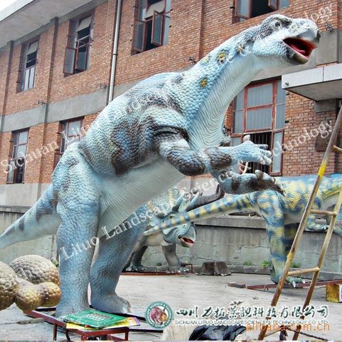 此产品属国内中高档仿真恐龙,由微电脑控制,以硅橡胶为主要原材料制作,恐龙动作灵活协调,叫声与动作同步,色彩及外形逼真,经久耐用。可应用于博物馆教育系统及工艺园林展示,观赏学习及活动等。公司生产的其他仿真恐龙、仿真动物、机器人等在功能上可以完成行走、奔跑、下蛋、吃食物、乘骑、搏斗、游泳、潜水、喷烟、喷水、对话、握手、人物识别、出售物品、迎宾等等动作。产品具体颜色动作声音等,均可以根据客户需求进行制作调整。