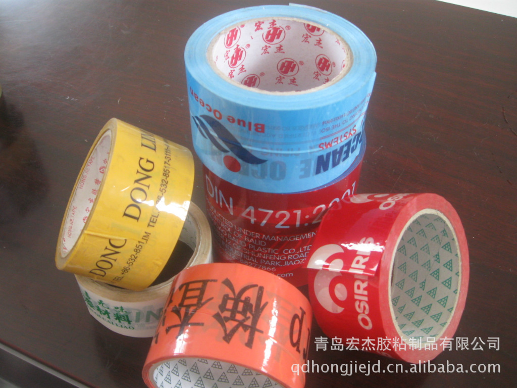优质彩印胶带以聚丙烯薄膜为基材,印上客户所需图案或商标文字,在涂上压敏胶烘干为不干胶带, 具有