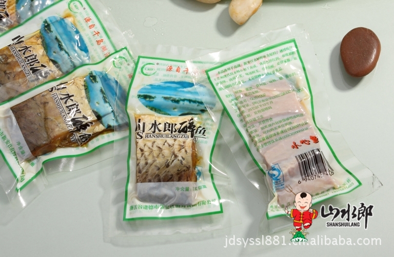 浙江山水郎食品有限公司是一家集养殖、加工、销售、科研于一体的杭州市农业龙头企业、科技示范企业,公司成立于2005年,注册资金1000万元。公司拥有1.3万平米现代化标准厂房、二条全自动生产线、1200平米研发中心及研发检测设备。公司通过了QS、ISO9000、HACCP、及食品安全信用体系等相关认证。拥有和申报国家专利31项,其中:《典型生鲜食品的高品质干燥关键技术研究及应用》荣获全国商业科技特等奖。“山水郎”牌风味鱼干,荣获杭州市名牌产品称号。