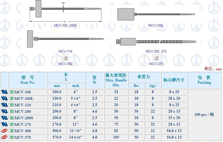 供应凯士士KSS尼龙扎线带/标示尼龙扎线带/UL扎带/防火等级94V-2