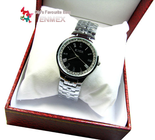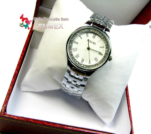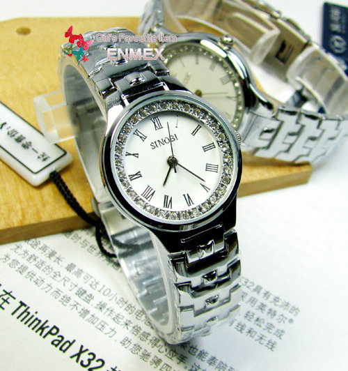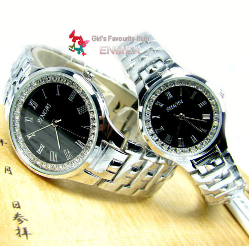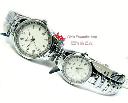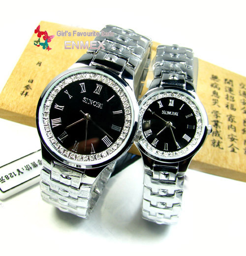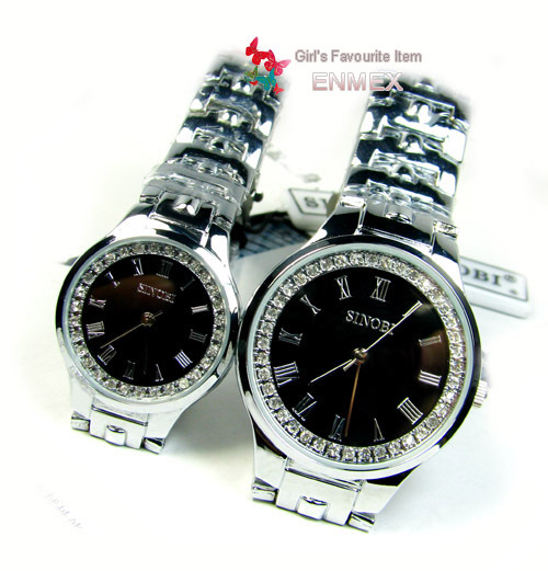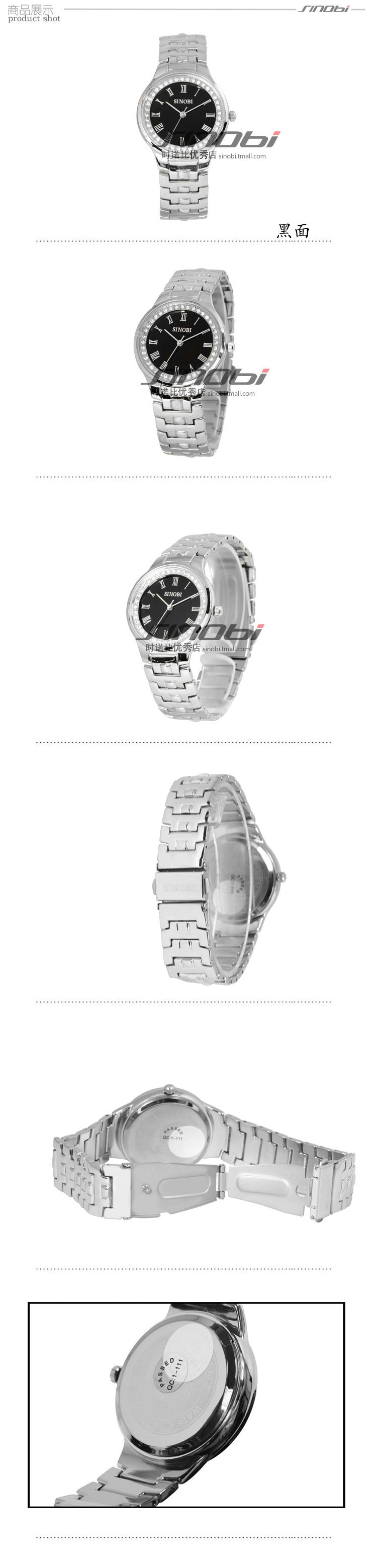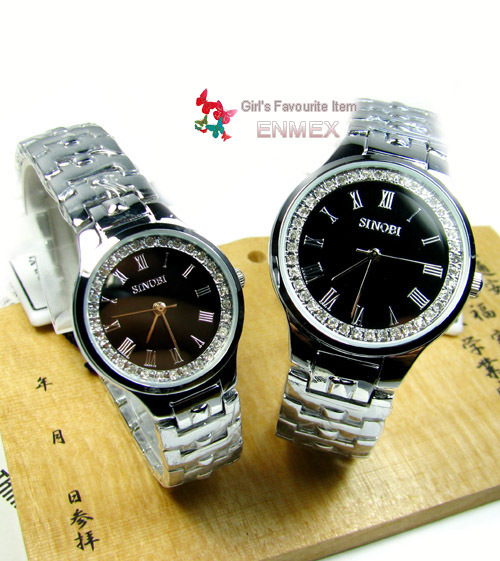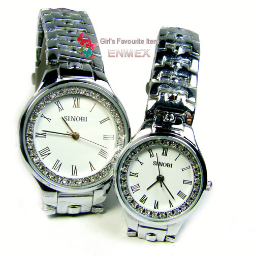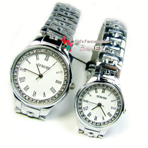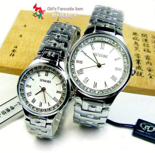款 式 :情侣对表品 牌 :SINOBI时诺比型 号 :S3399GL机 芯 :PC21S镜 面 :钢化加硬(光油面)表 壳 :全光白铬(男款白色石仔40粒、女款白色石仔30粒)指 针 :PNP线针表 带 :全光白铬表 扣 :双按弹弓扣男款尺寸 :表盘直径约3.3cm 表盘厚约0.6cm 表带长约21.5cm女款尺寸:表盘直径约2.5cm 表盘厚约0.6cm 表带长约20cm防 水 :20米(2ATM)