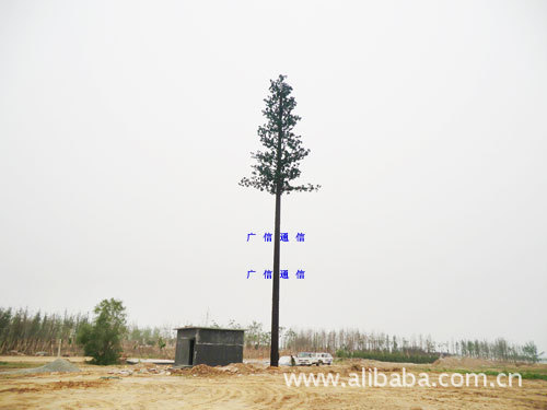 利用假树叶、树干来装饰天线抱杆以及天线,从而达到伪装、美化移动通信基站天线的一种方法。对于一些对环境美化要求较高、需要立抱杆或较高天线杆的站点(如较高级的居民住宅小区、公园等),可以采取这种方式。适用全向天线,可安装在路边、小区。