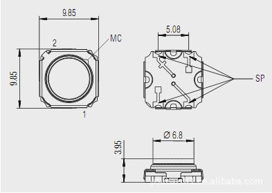 - 长宽高为 9.85mmx9.85mmx3.95mm