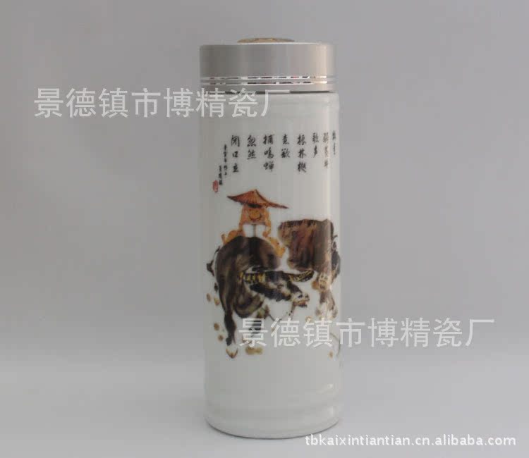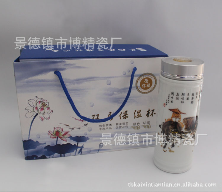 2工艺精:独特双层保温防震设计,内层优质景德镇独有高白泥陶瓷(健康养生),经1350度高温烧制而成,外层太空玻璃(高强度有机玻璃)防震防碎(解决了传统瓷器易碎的缺点),更好的保护了陶瓷杯体上的釉面及花纹,可保永不褪色。
