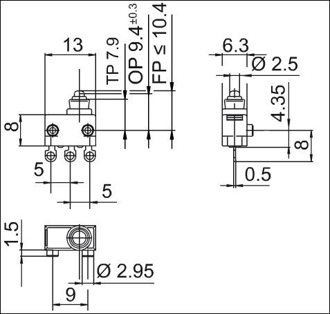 产品特点:- 设计紧凑,符合IP67防水防尘要求。- 小尺寸,但过行程>1.2毫米。- 特殊设计的按钮帽最大允许40度的角度施力。- 变种丰富,有各种不同的接脚,固定类型和动作杆。