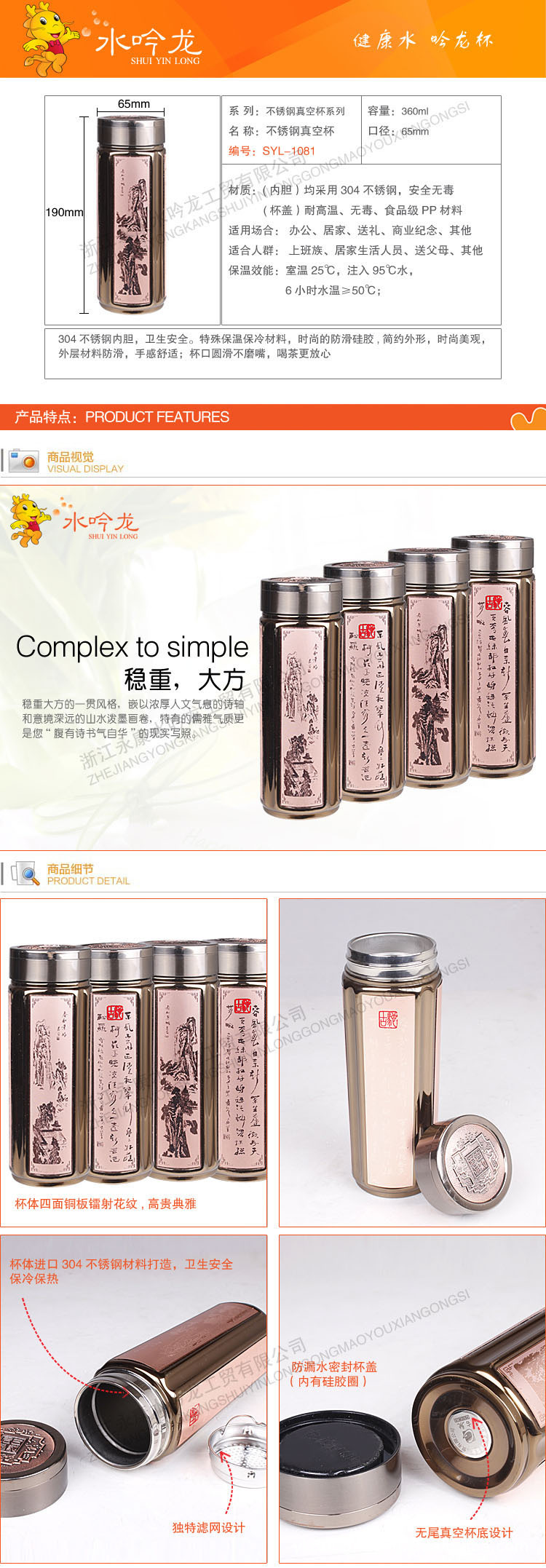 3、杯体:内胆钢材均采用正宗304#不锈钢,安全无毒、耐腐蚀;