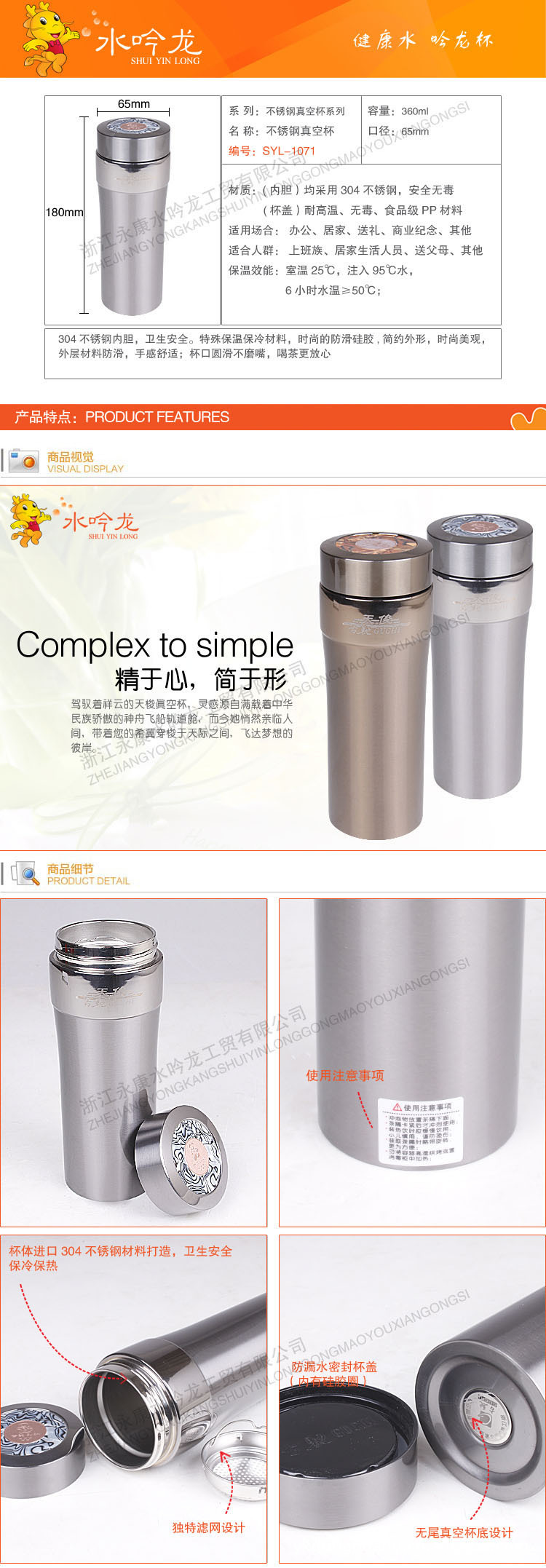 3、杯体:内胆钢材均采用正宗304#不锈钢,安全无毒、耐腐蚀;