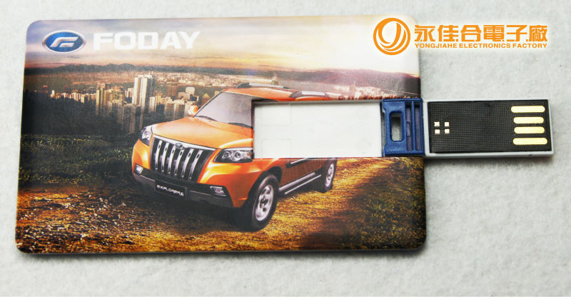 卡片U盘正反面都可以彩印客户指定的公司企业LOGO,印刷面积大且颜色丰富多彩,范围广,起到一种宣传广告效果,是客户送礼佳品;同时,携带和使用均非常地方便,读写速度快,存储容量大;此款产品装进口原装三星芯片,保质保量,防水防尘,使用寿命平均在5年以上;另一方面,可导入客户指定的公司或企业宣传资料,设置自动播放格式,USB一联接到电脑上便可自动播放出导入的宣传资料,更是起到一种广告效应。
