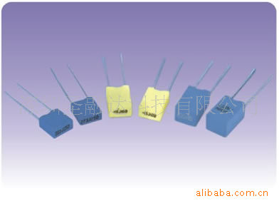 用金属化聚酯烯膜作电介质/电极绕制而成,导线采用镀锡铜包钢线单向引出,矩形阻燃塑料外壳和阻燃环氧树脂封装。