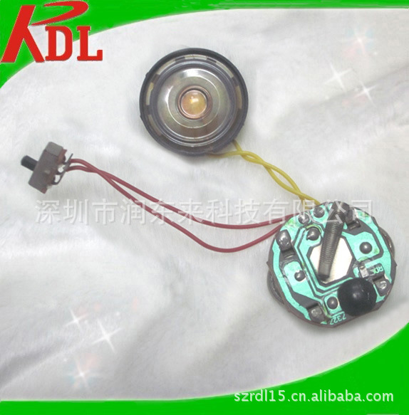 我公司专业供应玩具发声器,动物发音盒,毛绒公仔录音盒,挤压盒,光控发声器,贺卡录音机芯,贺卡音乐机芯,闪灯机芯,录音机芯,感光机芯,玩具机芯,礼品机芯,礼品盒音乐,纸袋音乐芯片等。