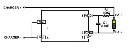 产品方案特点: 单芯片SOT23-5 封装;集成保护IC,对管MOS,周边器件;仅需一个外围器件,支持反接;负极保护,用户无需更换产品测试设备。