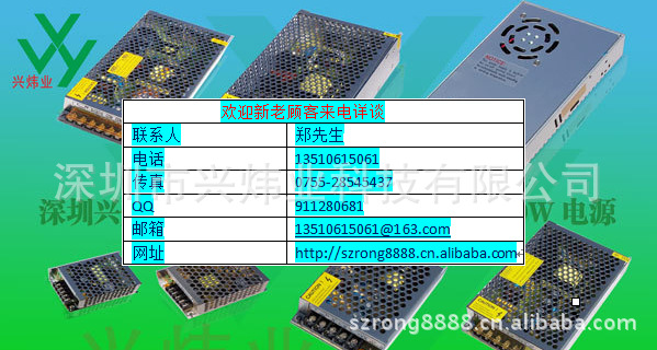 本公司生产的电源特点:低价格,高可靠,效率高,工作温度低,体积小,重量轻,105度输出电容器,软启动电流,有效降低AC输入冲击,100%满负荷烧机测试,全球适用AC输入电源,有短路保护,过载保护,内装EMI滤波器,纹波极小!