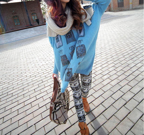超热门 暖暖复古~ 雪花 针织 打底裤