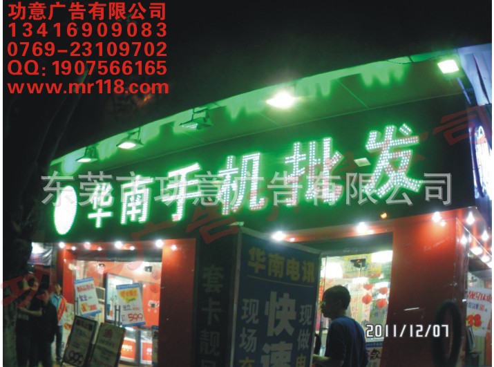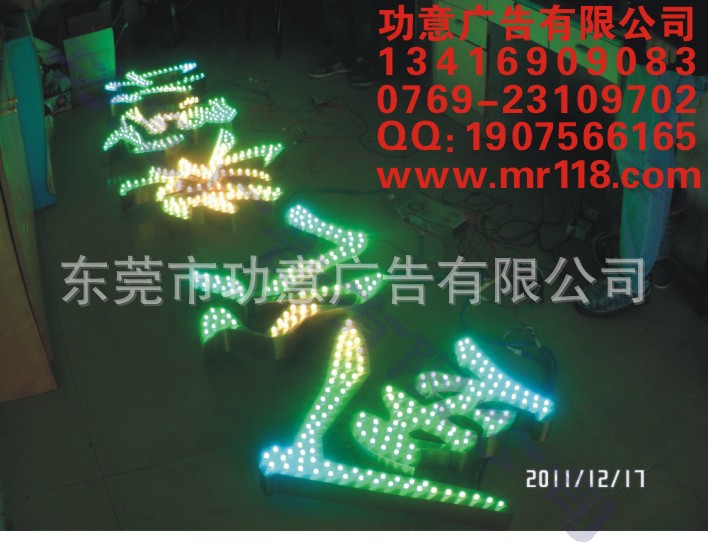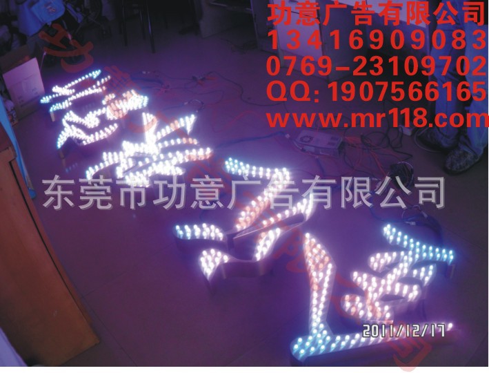 东莞功意广告 从九几年开始进入广告行业已有十多年了都是在广告行业打拼从未放弃过,到现在我自己出来开厂有多年了就是想把自己学到这些发挥出贡献出来为大家服务当然了我们也是有专业的团队精神为您专业的服务。希望大家多多支持也欢迎来电来图制作.来人参观也请您对我工厂提出您的宝贵建意. 专业为您服务的项目: 工程部: 广告招牌工程.铁架工程.字牌工程.招牌安装. 高空工程.招牌翻新.LED招牌制作.招牌维护工程.亮化工程。 招牌部: 专业制作广告招牌. 东莞吸塑发光字灯箱招牌专业从事发光字吸塑LED字霓红灯金属吸塑灯箱等广告制品的开发设计.制作和施工为一体的大型广告装饰.下设雕刻加工部吸塑制作部发光字制作部安装维护队. 我们拥有一批经验丰富的技术人员。 金属字部: 铜字. 烤漆字. 不锈钢字. LED发光字.楼顶大字. 水晶字. 钛金字.沙金字.汽车烤漆字.高.中.电镀金.银字.字牌加工. 金属腐蚀部: 腐蚀牌.机械牌.铜牌.不锈钢牌.东莞钛金牌.东莞汽车烤漆牌.东莞奖牌.东莞红木底板牌.东莞沙金牌.东莞指示牌.东莞门号牌..东莞丝印牌.东莞晒丝牌.最小的字可以做到0.3MM.铝.钢.铁腐蚀加工.上色.保证质量..美观好看大方. 谢谢.欢迎来电来人来图制作. Mobile:13416909083 QQ:190766165