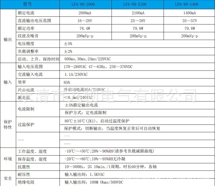 注:1. 所有参数在未特别指明时,都是在230VAC电压输入,额定负载和25℃条件下测量所得值。