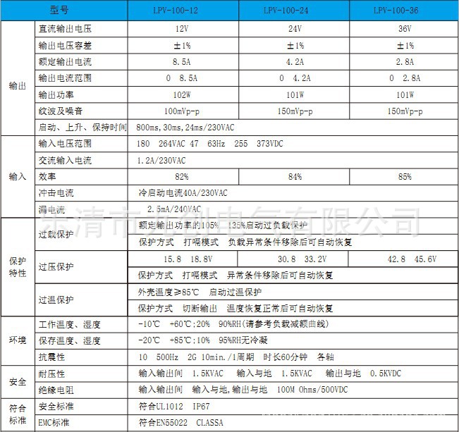 保护方式:打嗝保护,负载异常条件移除后可自动恢复