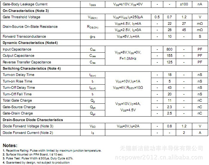 Vds=20V;Id=4A; Rds (ON)<27mΩ @Vgs=4.5V (Typ:22mΩ)