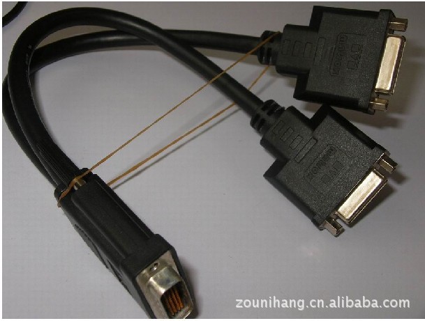 DVI数字信号传输有单连接(Single Link)和双连接(Dual Link)两种方式,它的传输速率可达4.9Gbps,双连接可达9.9Gbps.DVI是由DDWG(Digital Display working Group,数字显示工作组)发明的一种高速传输数字信号的技术,有DVI-D和DVI-I两种不同的接口形式。DVI-D只有数字接口,DVI-I有数字和模拟接口,目前应用主要以DVI-D为主。DVI是基于S(Transition Minimized Differential Signaling,转换最小差分信号)技术来传输数字信号,S运用先进的编码算法把8bit数据(R、G、B中的每路基色信号)通过最小转换编码为10bit数据(包含行场同步信息、时钟信息、数据DE、纠错等),经过DC平衡后,采用差分信号传输数据,它和LVDS、TTL相比有较好的电磁兼容性能,可以用低成本的专用电缆实现长距离、高质量的数字信号传输。