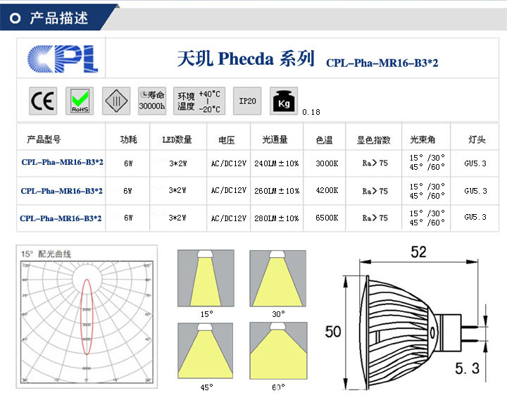 CPL灯杯品牌厂家批发 新款LED射灯灯杯 6w航空铝高亮可调聚光射灯