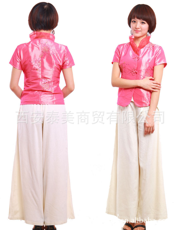 低价供应正品博玺华服唐装裤 阔腿长裤 双层雪纺女裤