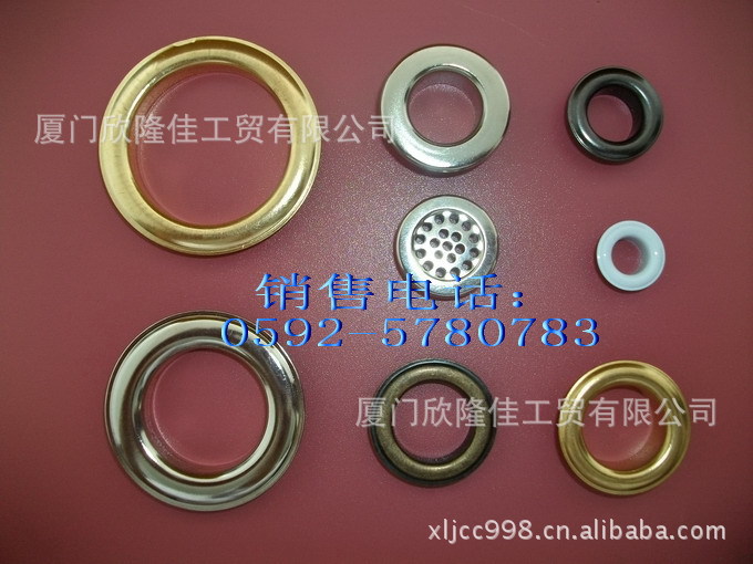 我司生产各种规格的黄铜鸡眼扣,材质有铁 铜 不锈钢 铝 塑料,款式多种,颜色可按客户要求订做,欢迎联系我司销售人员