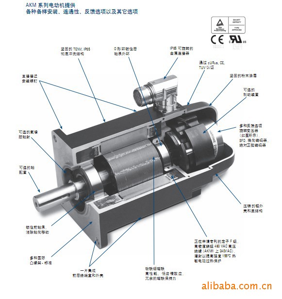 AKM无刷伺服电机性能优秀,灵活性高,是您优化应用的。多达26,000种的标准型号,AKM高性能伺服电机系列提供广泛的安装、连通性、转速、反馈和其它选项。AKM电机提供了平稳的性能、极高的转矩密度和高的加速度,25种框架/叠片组合。各种绕组设计,适用于全球所有标准电压,可与S200、S300和S600高性能伺服驱动器配套使用。