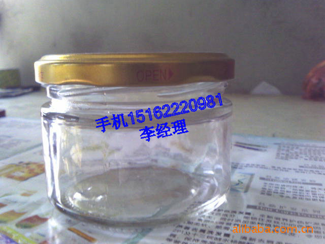 我厂生产800多个品种主要有:蜂蜜瓶、果酱瓶、酱菜瓶、酱油瓶、醋瓶、麻油瓶、酒瓶、饮料瓶、罐头瓶、腐乳瓶、调味瓶、果酒瓶、保健酒瓶、果汁瓶、医药瓶、咖啡瓶、口杯、奶瓶、玻璃烛台、把子杯、水杯、口服液瓶等,并可为玻璃瓶蒙砂、刻字、烤瓷等深加工。 我厂生产各号的马口铁盖及塑料盖,并加工印刷商标专利盖,配套各类铝盖、吕塑结合盖等。马口铁盖型号有:38#、43#、48#、53#、58#、63#、66#、70#、80#、82#、110#,塑料盖各类有:聚乙类、聚丙类、ABS料等。联系人李先生,手机:15162220981.