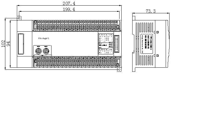 产 品 说 明 | 36点NPN型输入,24点继电器(R)或晶体管(T)或继电器晶体管混合(RT)输出 AC220V(E)或DC24V(C)电源 可外接扩展模块和BD板 可带时钟并对数据进行掉电保持 支持基本的逻辑控制和数据运算 支持高速计数、脉冲输出、外部中断、C语言编辑功能块、I/O点的自由切换、自由格式通讯、MODBUS通讯等功能 一般规格 项目 | 规格 | 绝缘电压 | DC 500V 2MΩ以上 | 抗噪声 | 1000V 1uS脉冲1分钟 | 环境温度 | 0℃~60℃ | 环境湿度 | 5%~95% | 通讯口1 | RS-232,连接上位机、人机界面编程或调试 | 通讯口2 | RS-232/RS-485,联网或连接智能仪表、变频器等 | 通讯口3 | BD板扩展通讯口RS-232/RS-485 | 安装 | 可用M3的螺丝固定或直接安装在DIN46277(宽35mm)的导轨上 | 接地 | 第三种接地(不可与强电系统公共接地) |