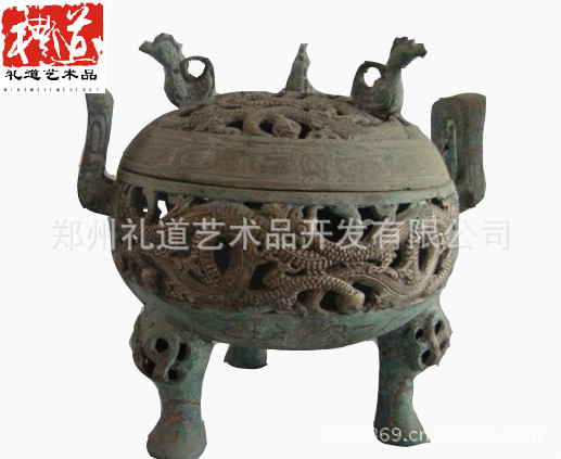 厂家直销仿古青铜器金属工艺品三足铜香炉 创意家居熏炉摆件