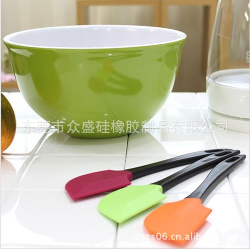 1.在将蛋糕糊移到蛋糕模具里的时候,只有硅胶刮刀,才可以令你不浪费蛋糕糊,刮的干干净净!因为刀头是有一定弹性的,可以顺着打蛋盆的壁刮取干净。