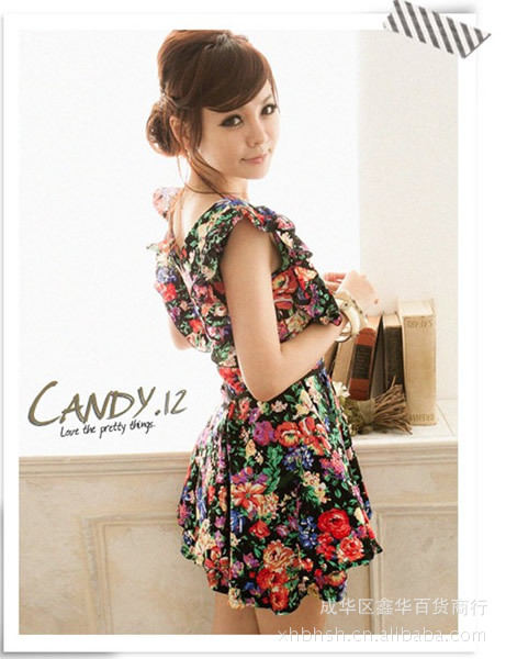A7-3023新款2012春夏韩版可爱淑女精致蝴蝶结圆领烫钻连衣裙