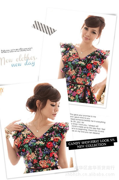 C8-81001新品2012春夏新款百搭腰绑带点点性感背心裙