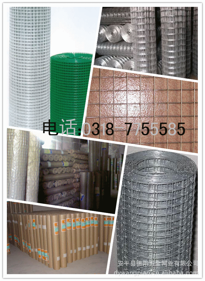 材质:选用优质低碳钢丝、不锈钢丝焊接而成编织及工艺:分先焊后镀、先镀后焊,又分热镀锌、电镀锌、PVC涂塑、浸塑。特点:具有极强的防腐抗氧化等特点。用途:广泛用于工业、农业、建筑、交通运输、采矿、球场、草坪、养殖等各行业的围栏、装饰、机械防护等。