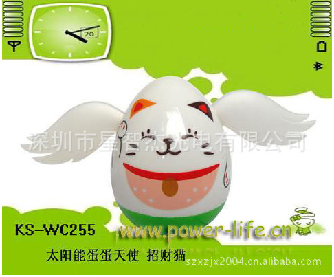 太阳能天使公仔(太阳能公仔),主要以太阳能为食粮,不需任何动力原料。公仔座前设有阳光接收口,即IC接口,采光度强,适合室内摆设。太阳能公仔头部为活动设计,IC口将所采集到的阳光转换成为太阳能,在太阳能的作用下,可爱的太阳能公仔频频向您摇头微笑,趣味十足,在它的影响下您的心情也如阳光般清朗。 它是您室内以及办公桌不可缺少的装饰,也可作为车载配饰,为你的爱车增添独一无二的活力与气质。