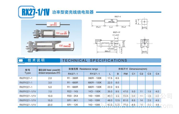 厂家直销RX27-1/1V 功率型瓷壳线绕电阻器