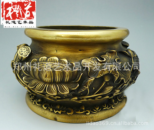 批量供应 风水铜香炉 黄色佛莲炉 烧香拜佛铜香炉