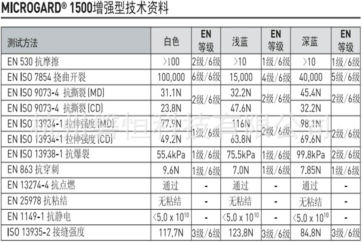 产品描述:用于Microgard1500 增强型布料采用了最新的超细纤维技术,透气性高,抗静电,并且过滤效率很高。
