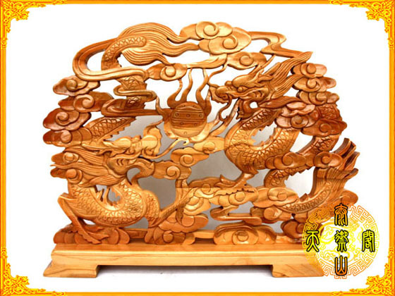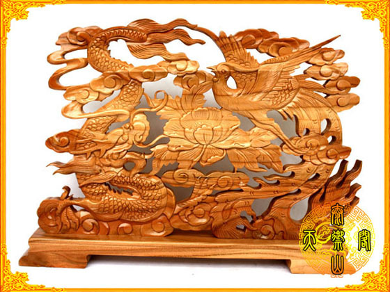 【名称】精品桃木台屏-龙凤呈祥/量大优惠