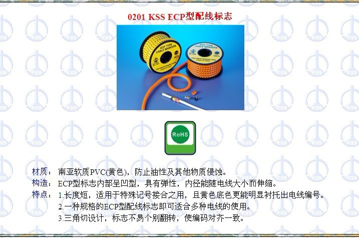 我司是专营KSS的配线器材目前产品有几万种[如;扎带、配线槽、浪管、固定头等]行销世界百于国,是亚洲最大的专业配线器材配套商,在电力、电子、机械、家具等工业领域深受信赖,现在阿里巴巴推出我们的形象产品KSS 配线标志系列,可为企业提供专业的产品配套,可为经销行业人士提供产品批发,我们以品质为保证,以服务求发展,期待与您的合作。
