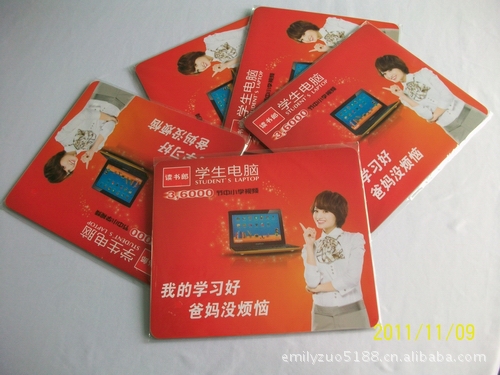 特点:图案直接印在PVC上,更显高档,经久不脱色,不发黄;各种鼠标在磨砂PVC ,移动灵活,定位精准。