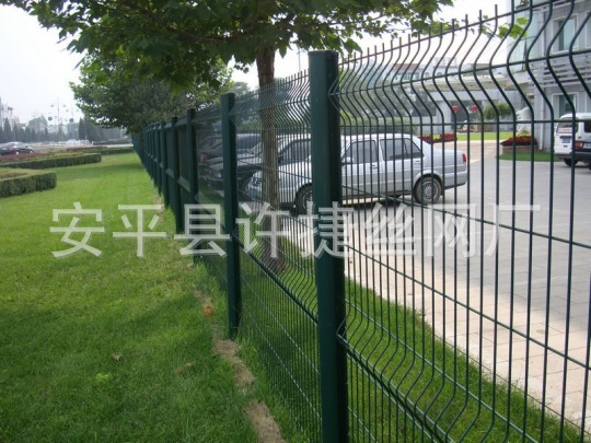 铁丝护栏网顾名思义就是由铁丝加工制作而成的护栏网,根据制作特点可分两种:一种为电焊网片护栏,另一种是勾花网护栏。这两种护栏网都在防护方面有着广泛的应用。 电焊网片护栏是经电焊网片机对铁丝,冷镀锌铁丝或热镀锌铁丝焊接后,再经折弯、喷塑或PVC等多道工序加工制作而成。具有耐腐蚀,美观,并有效起到防护等特点。