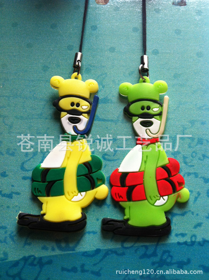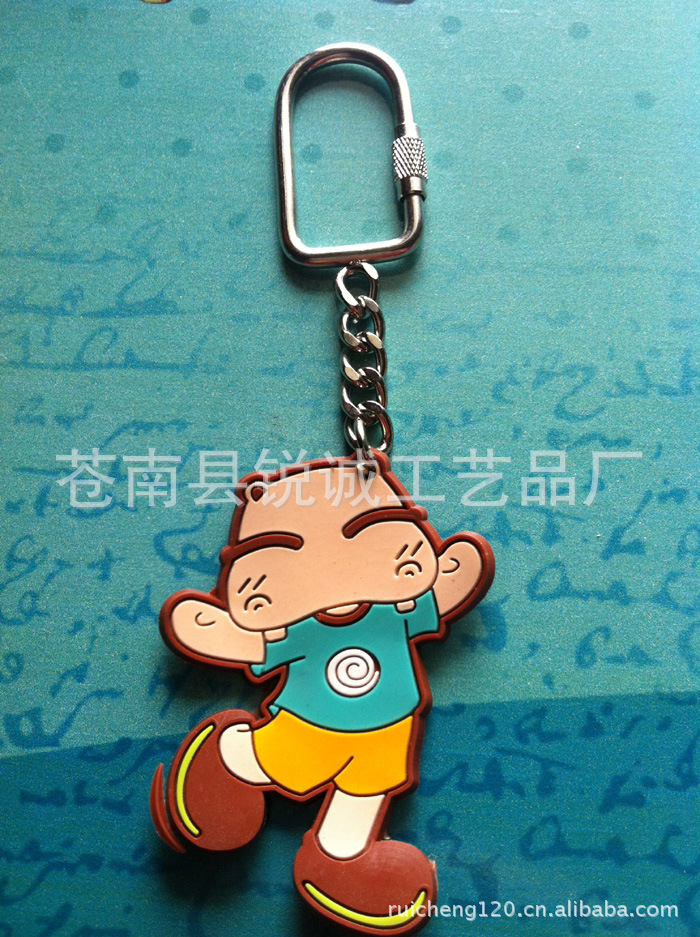 PVC软胶钥匙扣:可塑形强,可以根据自己想要的尺寸和形状定做,开模费一般也不会太贵,饰品店这种材质最多!