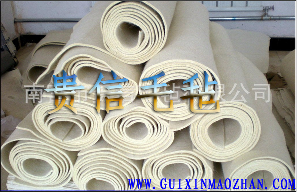 河北省南宫市贵信毛毡有限公司专业生产:工业毛毡、民用毛毡,针刺化纤毡,无纺布,毛毡制件,皮革机压花板毛毡,阻燃吸音毛毡,彩色不织布,工艺品毛毡,娱乐毛毡等八大系列上千个品种,其中(一)工业毛毡:包括112型、122型、132型、332型工业毡,抛光专用毡、吸油毡、隔热毡、细白毡、半细白毡、半粗白毡、彩色工业毡,漆包线电磁线专用毡等。(二)民用毛毡:民用防寒毡、针刺毡。(三)针刺化纤毡:防寒化纤毡,印花化纤毡,大棚用毡。(四)无纺布:100克以上的羊毛化纤。(五)毛毡制件:毛毡垫(毛毡油封)、毛毡圈、毛毡条、毛毡筒、毛毡轮、毛毡绳、毛毡带,异形毡制品等。(六)娱乐毛毡:书画毛毡、钢琴用毡、板擦用毡、麻将用毡等娱乐文化用毡。主要用于:机械、机电、化工、水泥、轻纺工业、也可用于大理石、不锈钢、精密家具抛光、飞机、汽车、火车、轮船、机床等设备防尘,密封、隔音、保温、绝缘、绝热其性能使用良