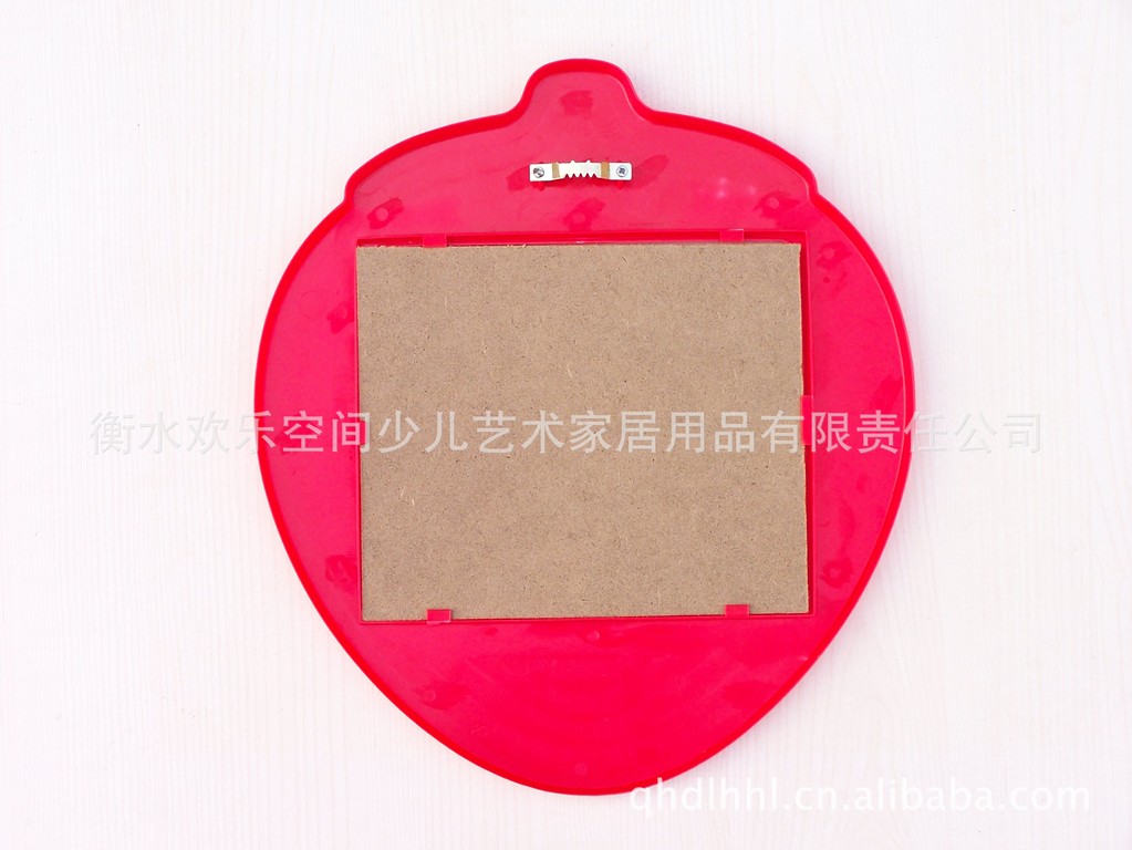 塑料卡通草莓相框,系用优质塑料注塑而成,用材环保,造型活泼,易于清洁。相框尺寸:内框尺寸20X17cm,外框尺寸33.5X30X1.6cm,适宜放10寸照片(须裁剪),可挂于幼儿和青少年卧室、书房、客厅等处。