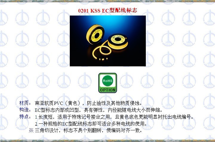 我司是专营KSS的配线器材目前产品有几万种[如;扎带、配线槽、浪管、固定头等]行销世界百于国,是亚洲最大的专业配线器材配套商,在电力、电子、机械、家具等工业领域深受信赖,现在阿里巴巴推出我们的形象产品KSS 配线标志系列,可为企业提供专业的产品配套,可为经销行业人士提供产品批发,我们以品质为保证,以服务求发展,期待与您的合作。