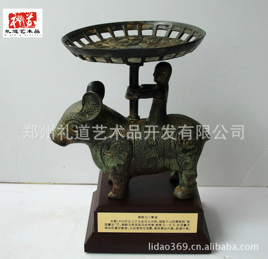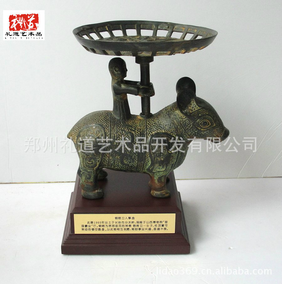 郑州礼道艺术品开发有限公司定制供应“山西仿古青铜器 金属工艺品创意摆件 鎏金错金栖座立人擎盘”。同时,本公司是仿古青铜器、高仿青铜器、精工风水铜器、珐琅铜器、热彩色铜器等产品专业生产加工的公司,拥有完整、科学的质量管理体系。立足于铜器方面的开发与生产,在继承传统工艺的基础上,不断的创新,不断从客户角度出发,为客户打造满意的礼品方案!让您送礼出手不凡!