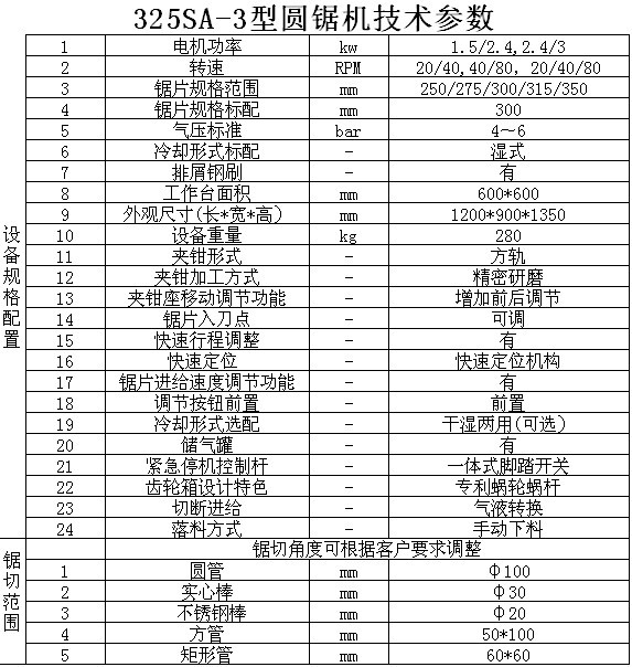 机器结构经凑,坚固耐用, 特别适用重切削,具备加工201/304厚壁管及小规格棒料锯切的能力,性能优于同类型产品。