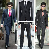 秋季新款男款西装三件套修身英伦 男士韩版潮休闲西服套装