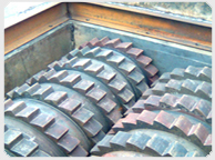 齿辊轴上装配着破碎齿环,齿环上镶嵌齿套,用螺栓固定。当破碎过程中齿套的磨损达到一定程度时可以进行个别更换,速度快,从而减少停机时间,降低生产成本。